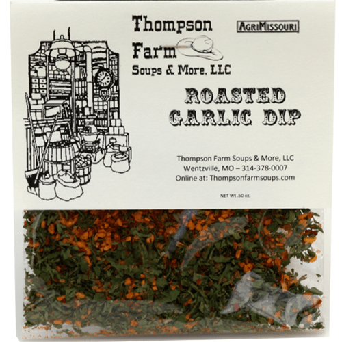Thompson's Roasted Garlic Dip is great served with chips or veggies. Just mix with one cup of mayo and one cup of sour cream. Non-Dairy versions of mayo and sour cream also work!