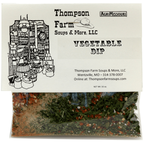 Thompson's Vegetable Dip is made locally in St. Charles, Missouri. This awesome dip is full of veggies and it is great with chips, vegetables, as a sandwich spread, or as a creamy, smooth pasta topper. This dip makes about two cups.
